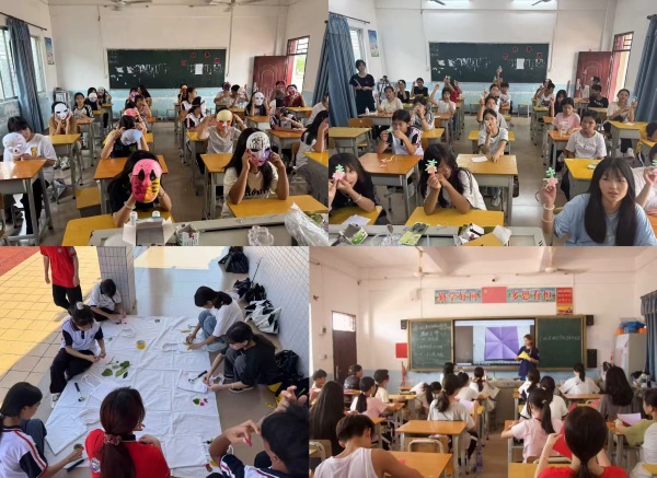 在传承文化、激发创意中,实践团结合自身专业特色,设计一系列动手实践活动:“解码脸谱色彩”、制作“扭棒生花”、“植物拓印”、“巧手折纸”等活动,让他们通过亲身体验收获技能,点燃热爱,将行动力与创造力作为成长的底色。把京剧脸谱中的忠、孝、仁、义、礼、智、信作为他们美德的核心价值观;把向日葵、蝴蝶等灵动作品作为他们破茧重生的永恒动力;以自然为墨、草木为章,让他们在协作中感受传统技艺的温度,这不仅培养了专注与耐心,更提升了孩子们的动手能力、艺术创造力和对中华优秀传统文化的认识理解,更将文化知识内化于心、外化于行,让传统文化与艺术创意在成长中留下鲜活印记。