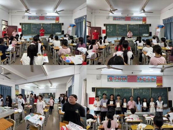 本网讯(记者 严志洋 邹锦扬 谢玮禧)7月13日至20日,广州城市理工学院珠宝学院“萤光筑梦”实践团在严志洋老师的带领下,于古寨中学圆满完成为期七天的暑期实践活动。实践团围绕“赋能成长,点亮希望”主题,精心设计“德智体美劳”五育融合课程,为学生们带来了一段充实难忘的学习旅程。古寨中学校长谢永理在开班仪式上致辞,对“萤光筑梦”实践团的到来表示热烈欢迎。他指出,留守儿童群体虽然面临父母陪伴的缺失,但始终受到老师和社会各界的关注。他希望孩子们积极参与活动,与大学生志愿者共同探索知识、畅谈梦想、树立理想。在实践团圆满完成实践活动后的总结表彰大会上,谢校长高度赞赏了实践团开展的科普实验、艺术课堂等活动,勉励同学们珍惜时光、树立目标、认真学习,不负时代与父母的期望。他寄语同学们延续探索精神和学习热情,并再次感谢实践团,祝愿活动圆满成功,让留守儿童在关爱中茁壮成长。