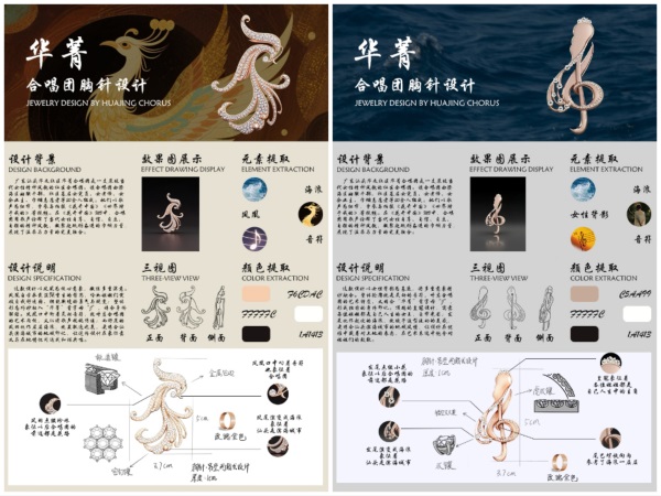 胸针设计终稿展板(张文馨 刘洁瑜 供)