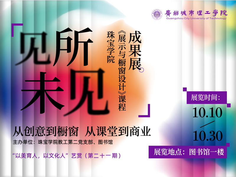 作为珠宝学院“以美育人,以文化人”艺赏品牌活动的第二十一期,本次《展示与橱窗设计》课程成果展的顺利举行,不仅展现出珠宝学院党建引领下的专业教学与校园文化建设深度融合的生动体现,更是深化了师生们对党的创新理论的理解与认同,同时也为助力珠宝学院打造特色党建品牌、推动学校高质量发展注入独特而强大的动力!