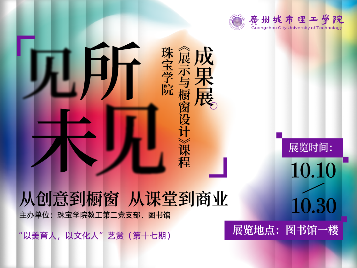 本网讯(记者 彭晴)为持续强化党建引领核心作用,扎实推进珠宝学院党建与业务深度融合,着力打造标杆院系品牌。10月10日,由珠宝学院教工第二党支部与图书馆联合举办的《见所未见——从创意到橱窗,从课堂到商业》课程成果展在学校图书馆一楼开展。本次展览集中展示了我校2022级产品设计专业学生在课程中的实践成果,这不仅是对学生学习成果的一次集中检阅,也是珠宝学院“以美育人,以文化人”育人理念的生动体现。