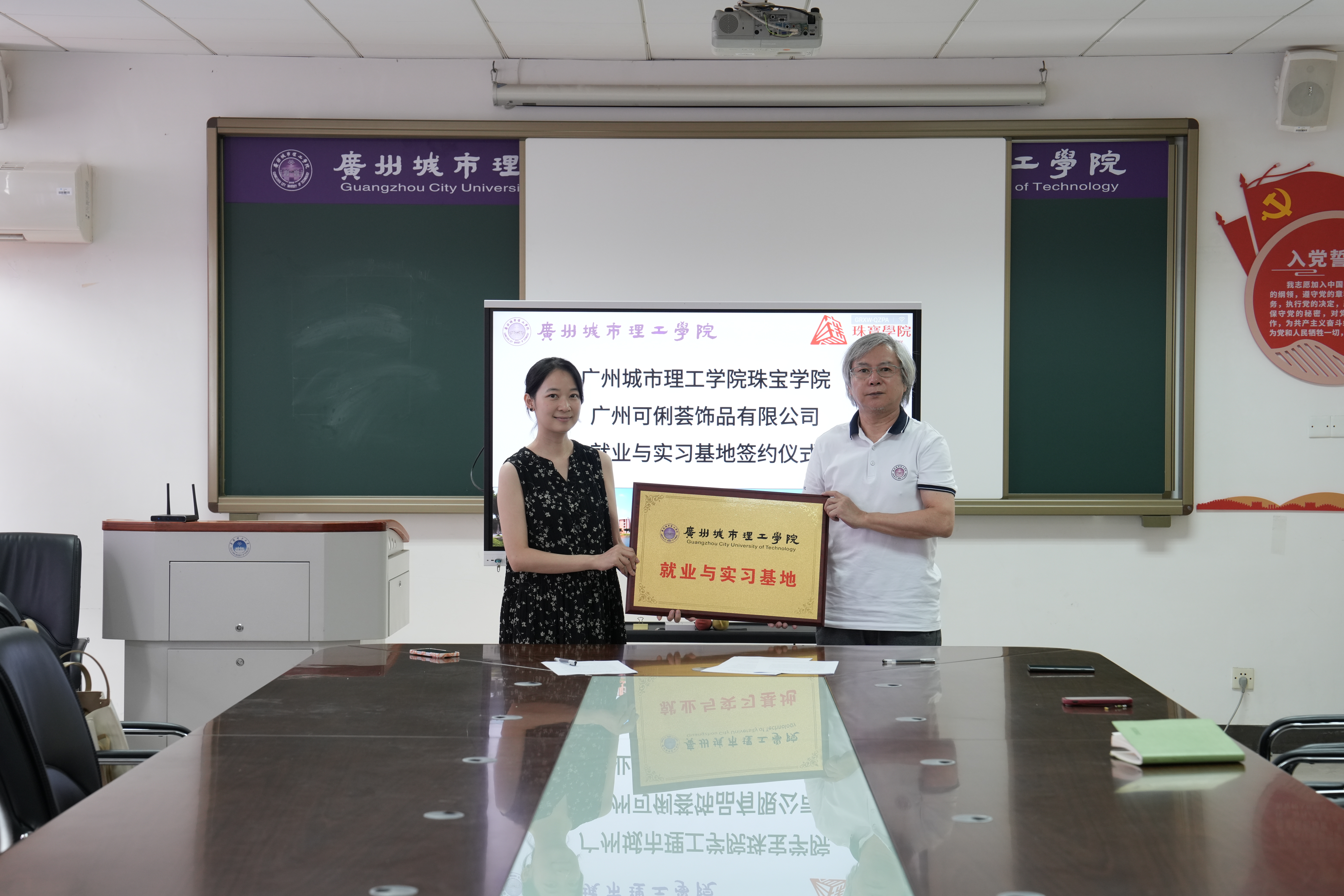 会后,张珂院长与梁小兴代表双方签署《就业实习基地合作协议》,并完成授牌。双方就构建三大合作机制达成一致意见,一是实践育人通道,企业接收定量的学生开展认知及顶岗实习;二是就业服务联动,企业优先录用实习优秀学生;三是促进产学研融合,学院通过横向项目或举办赛事等形式为企业提供设计理论与文化创新支持。