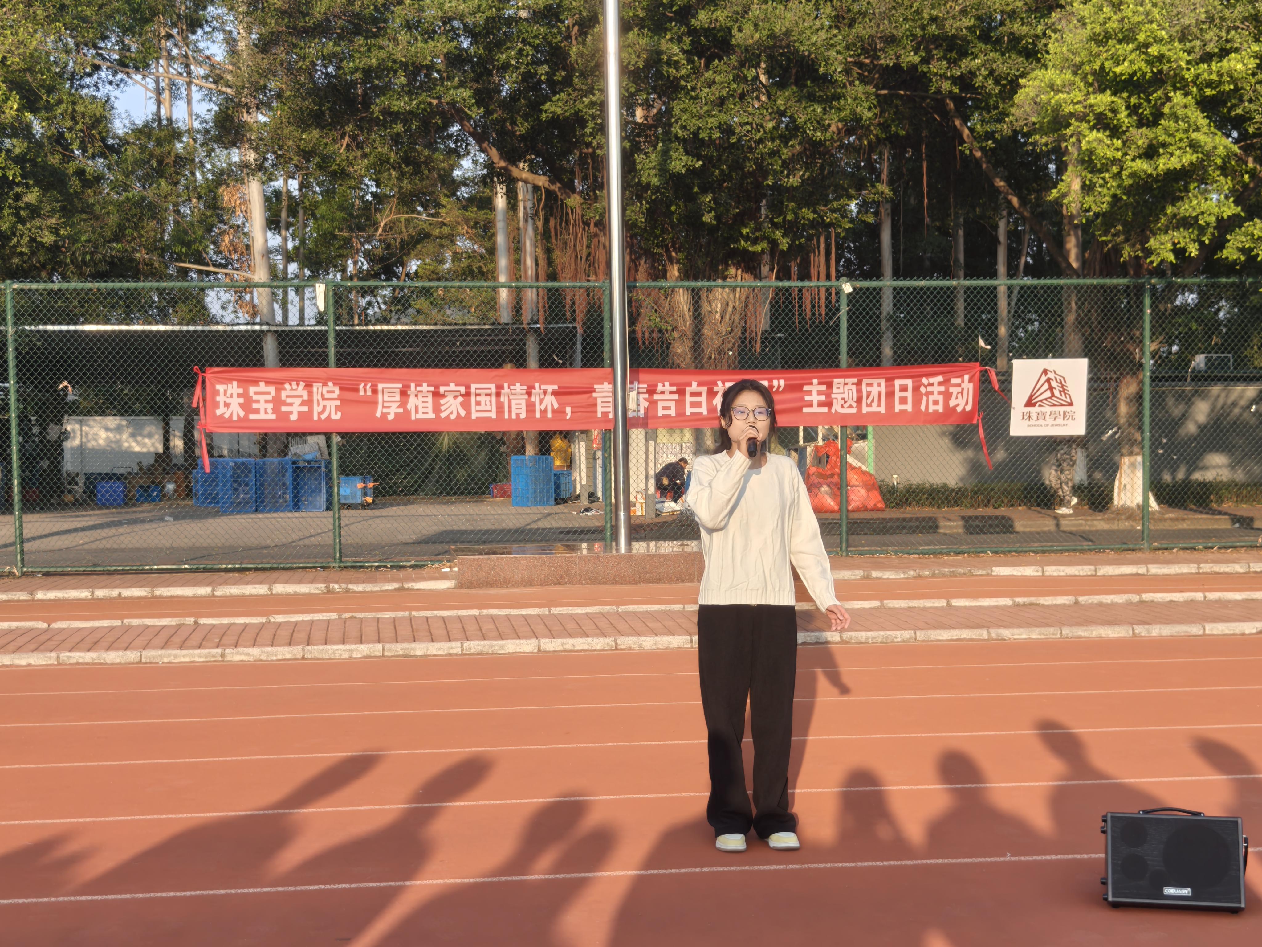 活动尾声,珠宝学院歌唱队代表林诗媛同学深情演唱了《我爱你中国》。悠扬的旋律在校园上空回荡,全体师生轻声和唱,在婉转的歌声中回望革命先烈的奋斗征程,感悟其崇高精神与家国情怀。现场氛围庄重而热烈,同学们纷纷表示,强烈的归属感和自豪感在心中油然而生,爱国之情和报国之志也更加坚定。