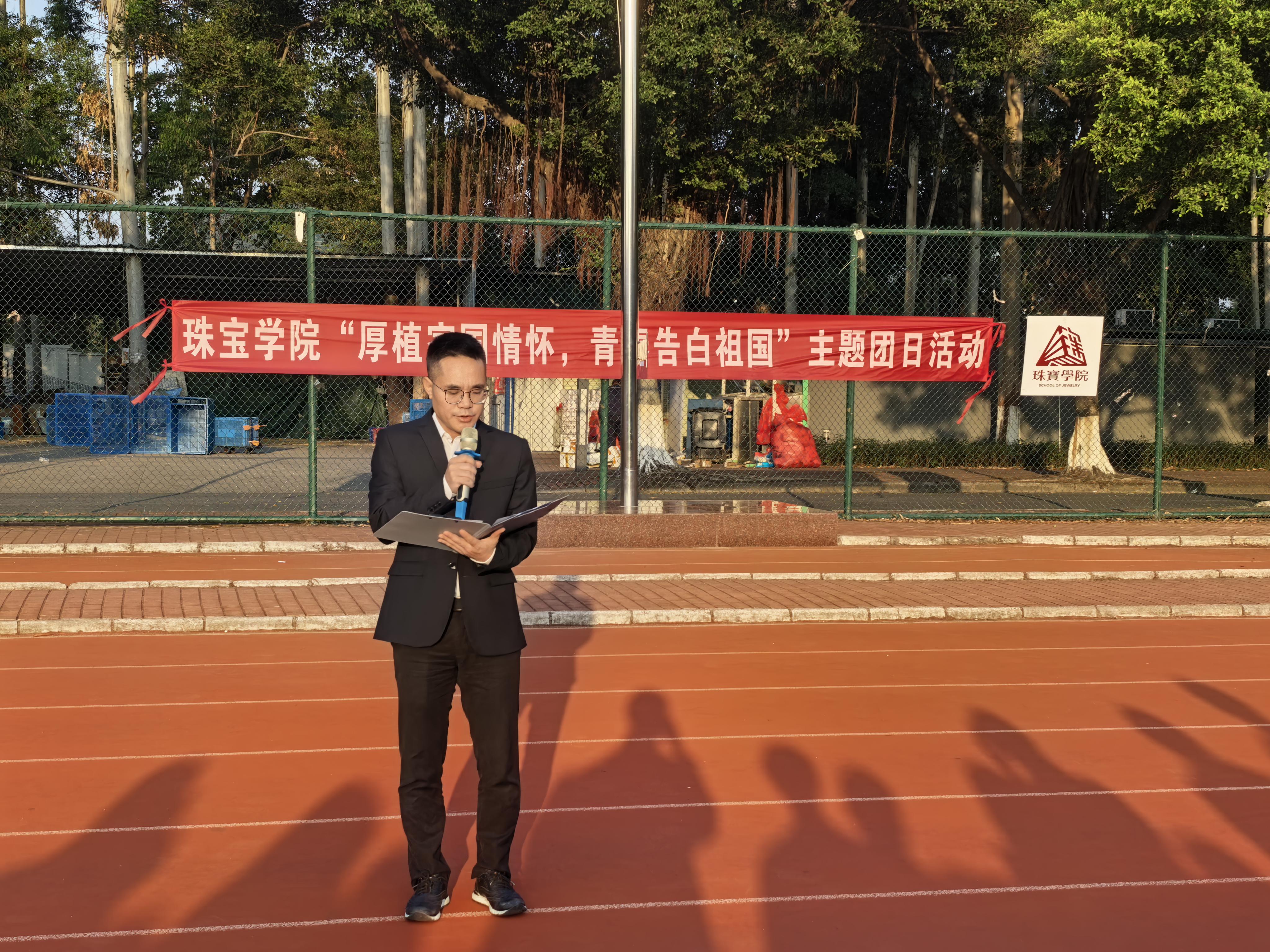姚勇作国旗下讲话(珠宝学院团委信息中心 摄)
