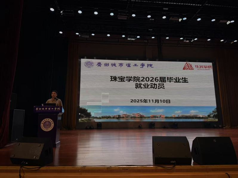 本网讯(记者 文嘉俊)为帮助2026届毕业生把握行业数字化转型机遇、明晰职业发展路径,平稳衔接校园与职场,11月11 日下午,珠宝学院在学生活动中心隆重举行2026届毕业生毕业与就业动员大会。本次大会特别邀请前程无忧集团高级校招项目顾问容喆先生莅临指导,珠宝学院院长张珂、党总支副书记姚勇、学生工作办公室负责人、2026届毕业班辅导员及400余名毕业生齐聚现场,共话就业与成长。